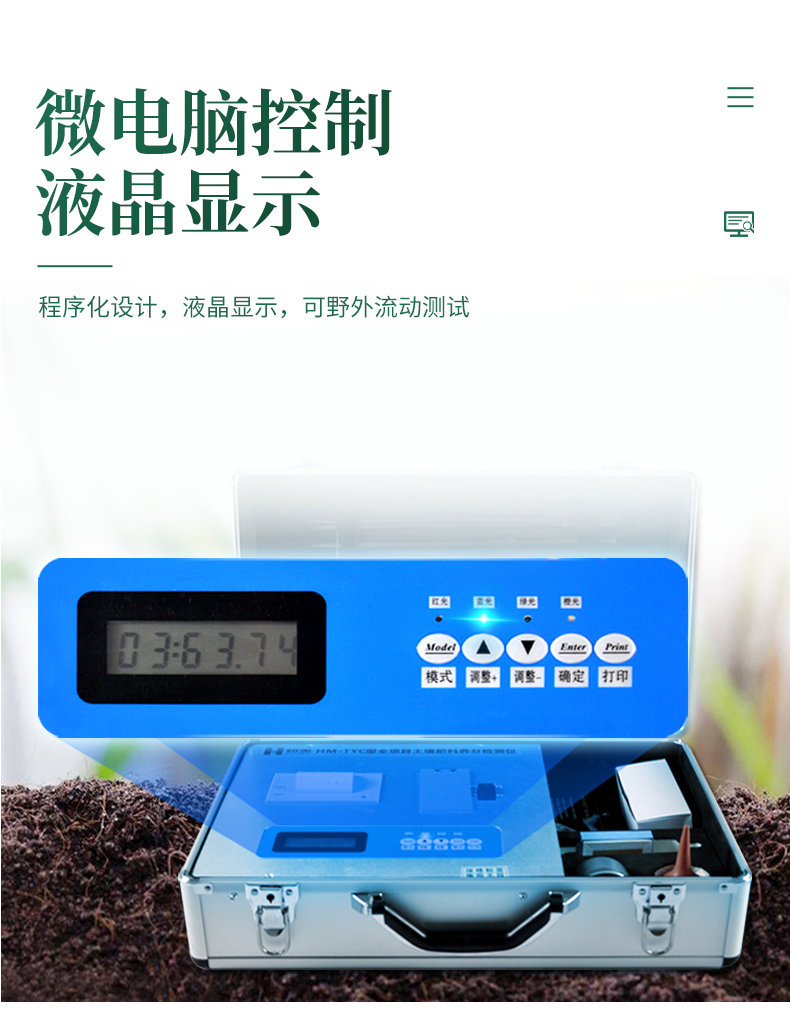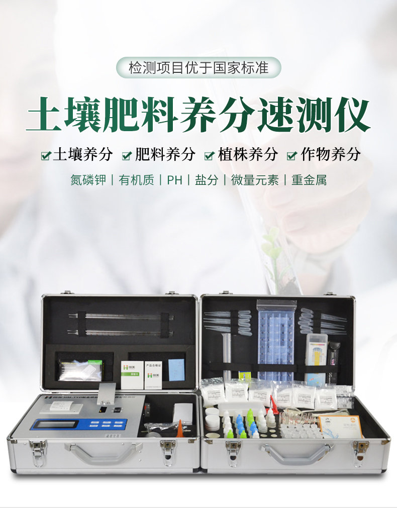 科研級(jí)土壤肥料養(yǎng)分速測(cè)儀功能全:測(cè)試項(xiàng)目國內(nèi)外齊全(各類藥劑均可選購)。