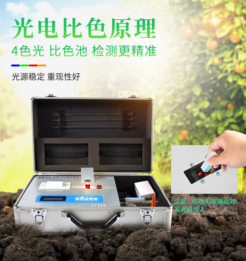 配套齊全:該儀器集藥、器、儀為一體,攜帶方便,相當(dāng)于一個(gè)小型實(shí)驗(yàn)室。適于農(nóng)業(yè)服務(wù)部門或農(nóng)資經(jīng)銷商、肥料廠商測(cè)土施肥和鑒別肥料真假。